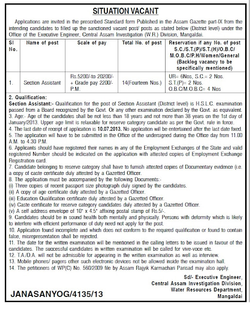 (3) Age : 38 yrs. as on 1.1.2013. Relaxation of upper age shall be as per Govt. policy