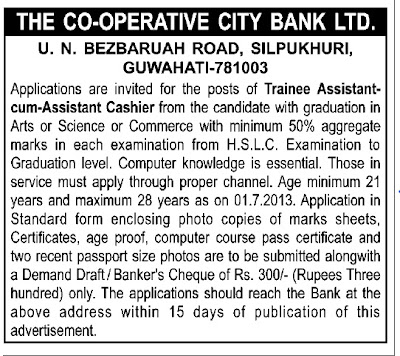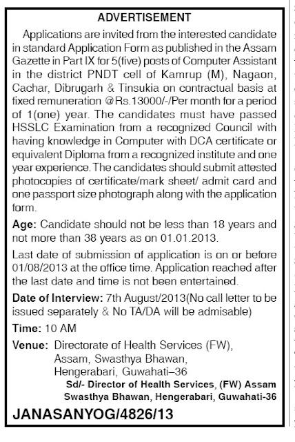 Interview for sl. no. 01 to 05 will be held on 29 July 2013, for sl. no.06 to 07 interview will be held on 30 July 2013 and for sl. no. 08 to 10will be held on 31 July 2013.Candidates are to report at 0930 hours at Army Public School Narangi on the respective dates.